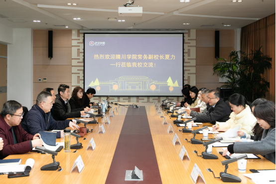夏力对武汉学院的热情接待表示感谢,介绍了我校的办学基本情况与发展理念。他表示,武汉学院在数智化教育、产教融合、师资引育等方面的创新做法具有重要参考价值,期待两校今后持续深化交流,共同推动民办本科高校教育质量提升。