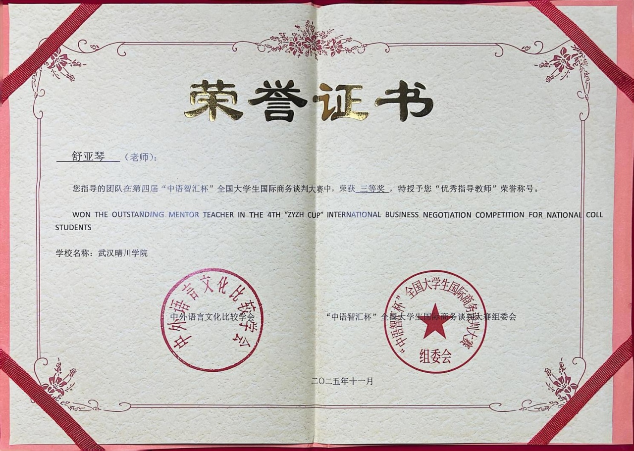 此次获奖是学校持续践行“以赛促学、以赛促教、以赛促改”育人模式的生动体现,也彰显了学院在国际商务谈判人才培养方面的扎实成效。下一步,学校将继续深化教学改革,突出专业特色,致力于培养具有国际视野、专业素养与实践能力的高水平外语人才。