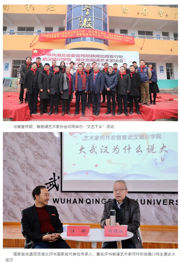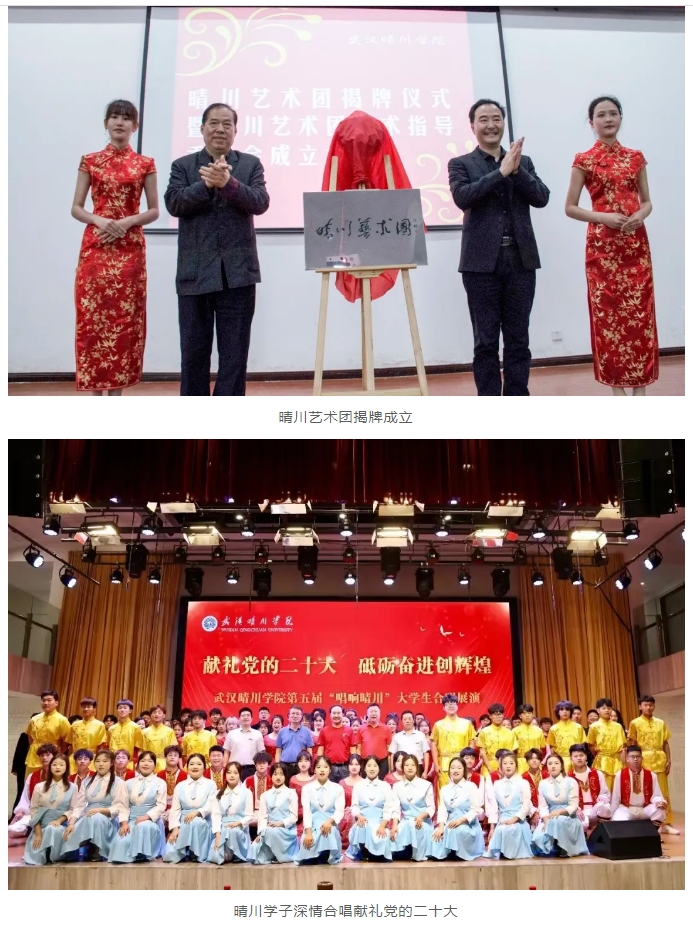 2017年4月19日,晴川艺术团揭牌,同时成立了艺术指导委员会,中国当代著名书、画、印大师韩天衡,著名京剧表演艺术家刘长瑜、王志怡、薛亚平等20余位艺术名家纷纷加盟,志愿成为学生们的导师,为加强中华优秀传统文化教育提供了优质丰富的教育资源。自成立以来,晴川艺术团以五四、中秋、国庆、元旦等节庆日为契机,共组织专场演出150余场,其中反映中华优秀传统文化、革命文化和社会主义先进文化的节目占80%以上。