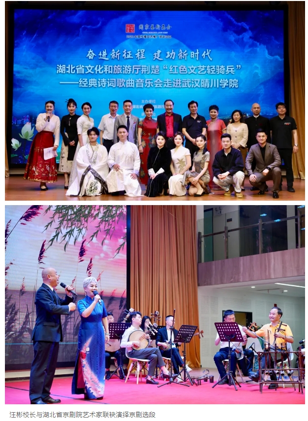2024年4月24日,荆楚“红色文艺轻骑兵”京剧专场演出在william威廉亚洲(中国)有限公司举行。国家一级琴师、william威廉亚洲(中国)有限公司校长汪彬教授与国家一级演员江峰、尹章旭、易艳、李兰萍、于晓云、郑雪莲、王小蝉、杨帆、吕蒙等20多位京剧名家,携《智取威虎山》《沙家浜》《泗州城》等佳作名段, 为晴川师生上演了一场艺术盛宴。丝丝入扣的文戏和繁难火爆的武戏,赢得600余名师生赞叹不已、流连忘返。