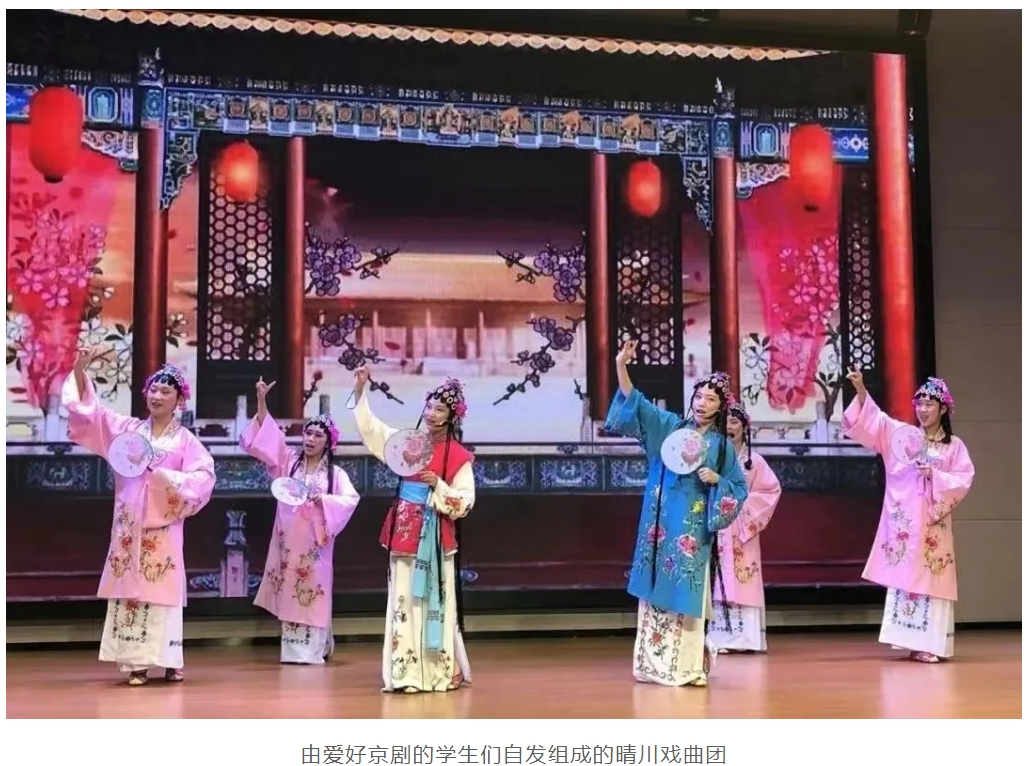 经过多年的扎实推广,京剧文化现已融入到学校生活的各个方面,画脸谱、唱京腔成为晴川学子的日常兴趣爱好,一颗颗京剧的种子在同学们的心田悄悄生根发芽。由爱好京剧的学生们自发组成的晴川戏曲团,排演了近二十幕京剧经典选段,在省市级大型文艺展演活动中多次亮相,其中的《卖水》在湖北省大学生艺术节上屡获大奖。在唱响阳春白雪的国粹艺术中,中华优秀传统文化滋养学生心灵,植根晴川。