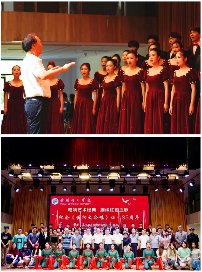 “《黄河大合唱》具备宏大民族音乐史诗的规模和制式,它有完整的诗剧结构、多样的合唱形式,有丰富独创的音乐语汇与艺术风格,有鲜明的人物形象和象征意义,个性而全面地表现了中华民族伟大的精神与宁死不屈的气节。”演出结束后,汪彬校长难掩激动之情,“在晴川校园唱响红色经典,能激励晴川青年学子深刻感悟经典旋律中饱含的革命激情和音乐力量,赓续红色血脉,传承中华民族团结一致、勇往直前的顽强精神。”