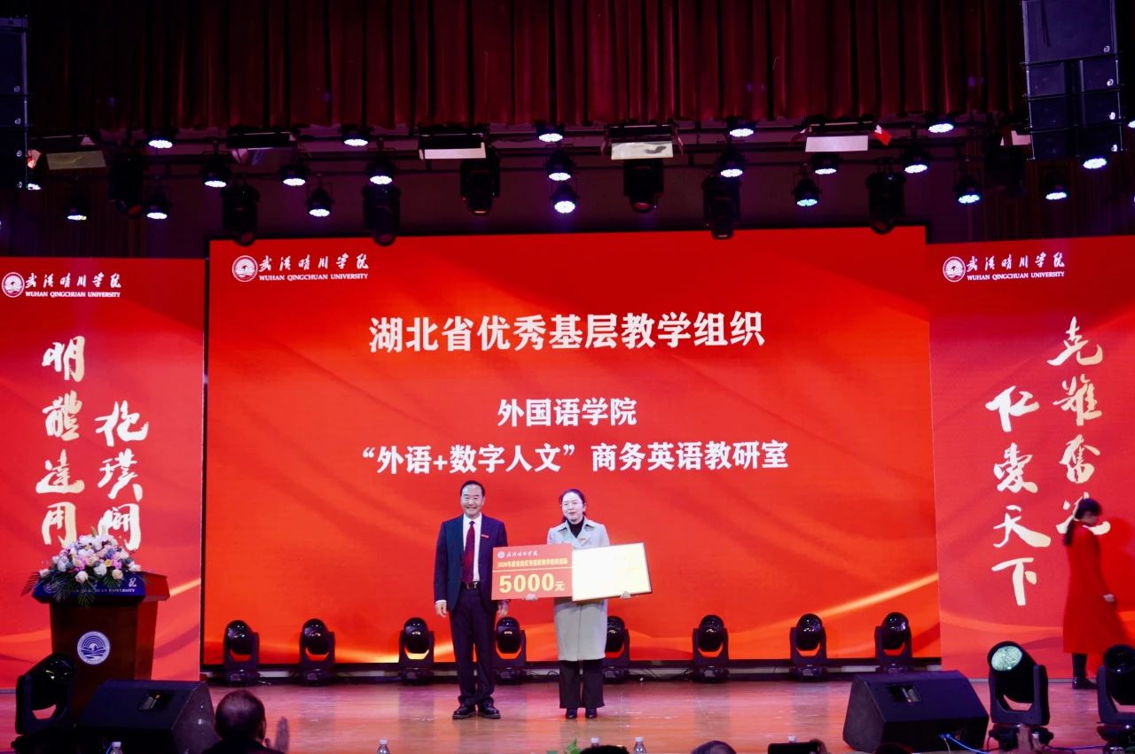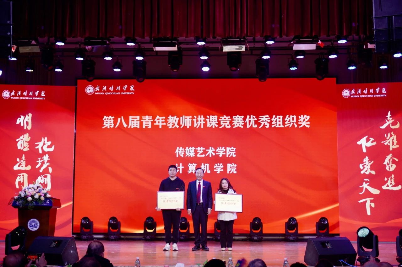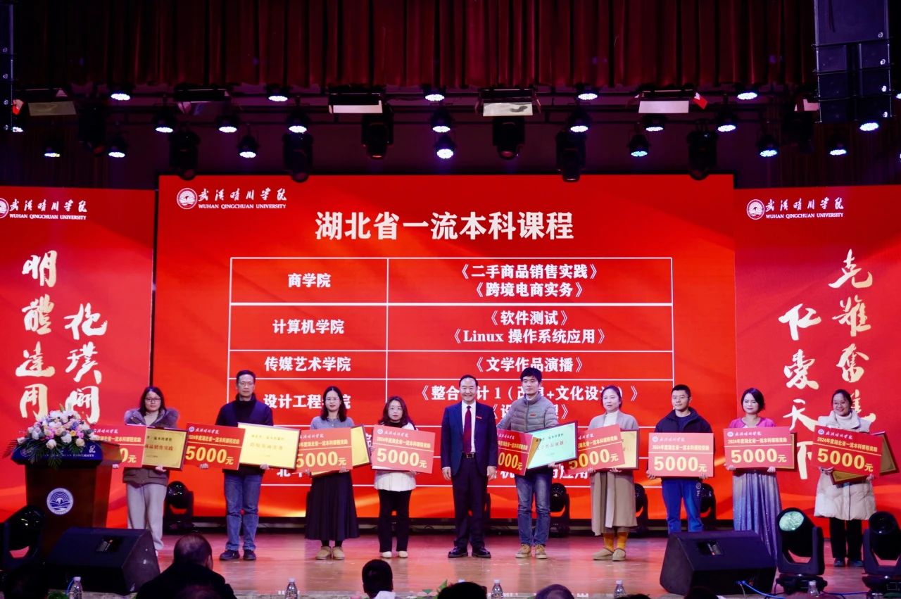 董事长、校长汪彬教授为第八届青年教师讲课竞赛优秀组织奖、湖北省一流本科课程、湖北省优秀基层教学组织、2024年度绩效考核先进单位颁奖