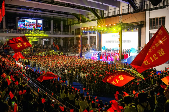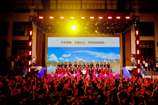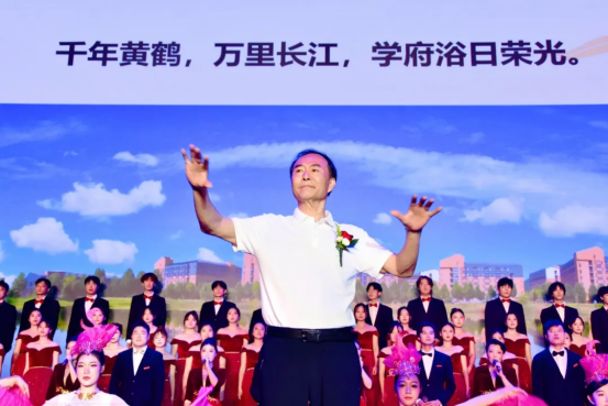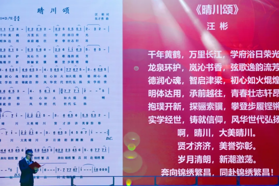 发布仪式现场,汪彬校长登台指挥,现场师生深情合唱《晴川颂》,以歌言志,以声传情,震撼心灵。