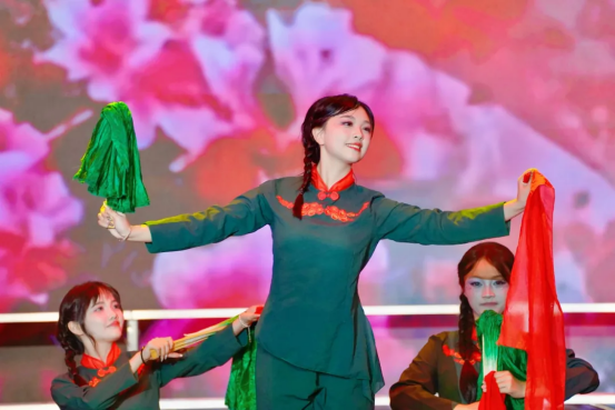 民间舞《映山红》用翩跹舞姿,带我们回到那段峥嵘岁月;随后的朗诵《假如我生活在那个年代》,用声音的力量,完成一场穿越时空的青春对话。