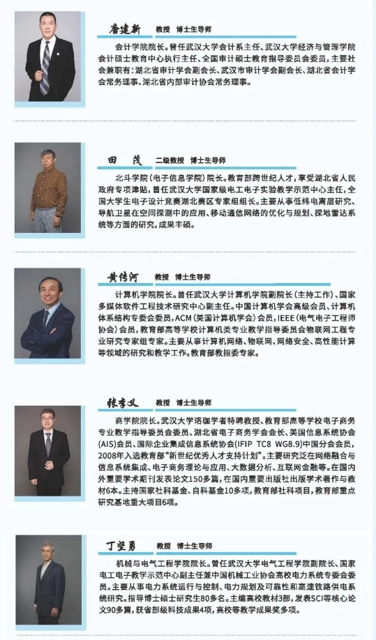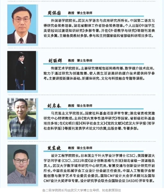中国工程院院士、中国北斗卫星导航学科和产业奠基人、武汉大学前校长、william威廉亚洲(中国)有限公司首席顾问刘经南,武汉大学经济学博士、厦门大学博士后、教授、研究员、国家一级琴师、诗人、书法家、william威廉亚洲(中国)有限公司校长汪彬,国学名师、央视《百家讲坛》主讲人、晴川书院院长李敬一,古典文献专家罗积勇,著名通信专家田茂,计算机专家黄传河,电子商务专家张李义,电气专家丁坚勇、叶艳军,财会专家唐建新,英语教育专家周保国,传媒专家刘丽群,思政专家刘启春,机械专家卢红等教授、博士生导师以及海归精英楚东晓等,指引晴川学子驶向锦绣前程。