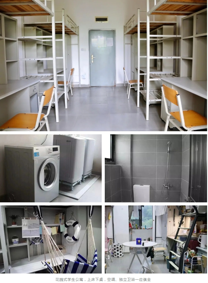 校园环境新雅怡人,各类设施顶尖高配。晴川之美,不止于自然风物,更配备一流的办学设施,学校建有功能齐全的教学区、实验实训区、学习休闲区、住宿生活区、体育运动区。现代化、智慧化教学大楼和高水平实验实训室,为学子潜心修学提供“硬核”保障;花园式学生公寓均配有独立卫浴、空气能热水器、空调,光纤网络全覆盖;学生食堂安装了中央空调,菜品种类繁多,被誉为武汉高校中“最质优价廉”的食堂之一;医院、超市、休闲商业区等配套设施一应俱全,助力学子学习安心、生活舒心、追梦顺心。