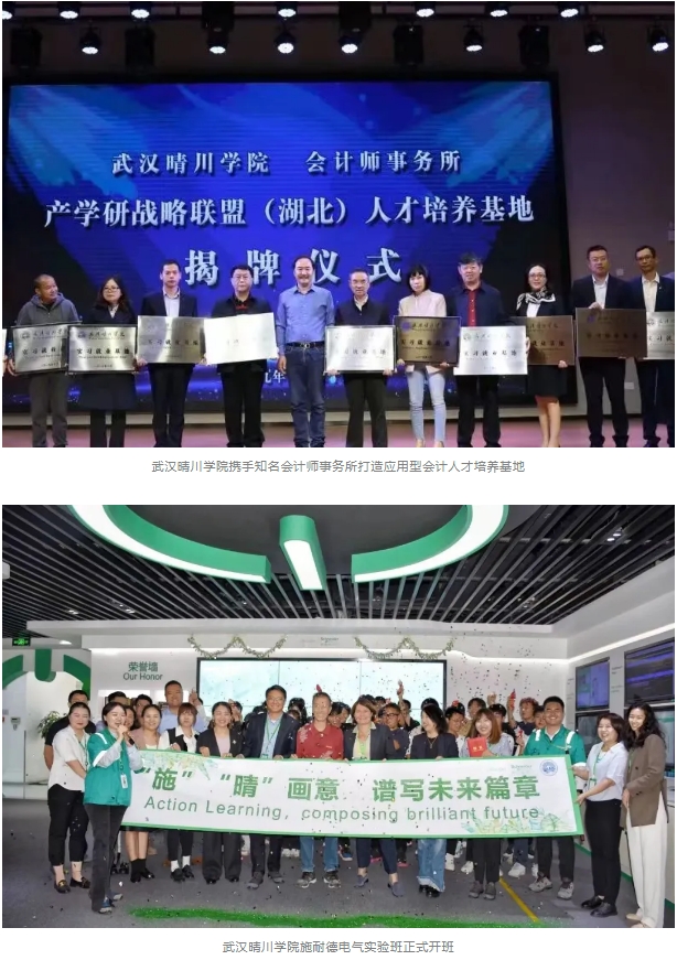 学校高度重视产教融合,深入推进校企合作。学校不断拓展与湖北省注册会计师协会、阿里巴巴、施耐德电气等100多家知名企事业单位协同育人的深度与广度,打造校企合作“航母”,成立产学研战略联盟人才培养基地,开办了“智能会计”“工业机器人”等20多个特色班,学生毕业后优先就业。学校将创新创业教育融入人才培养全过程,投资2000多万元建成8000平米大学生创新创业孵化基地,获批100余项国家及省级大学生创新创业项目,创新成果居同类高校前列。接受个性化教育,参与知名企业深度实践,企业“大咖”手把手进行指导,让晴川学子们对未来充满信心。