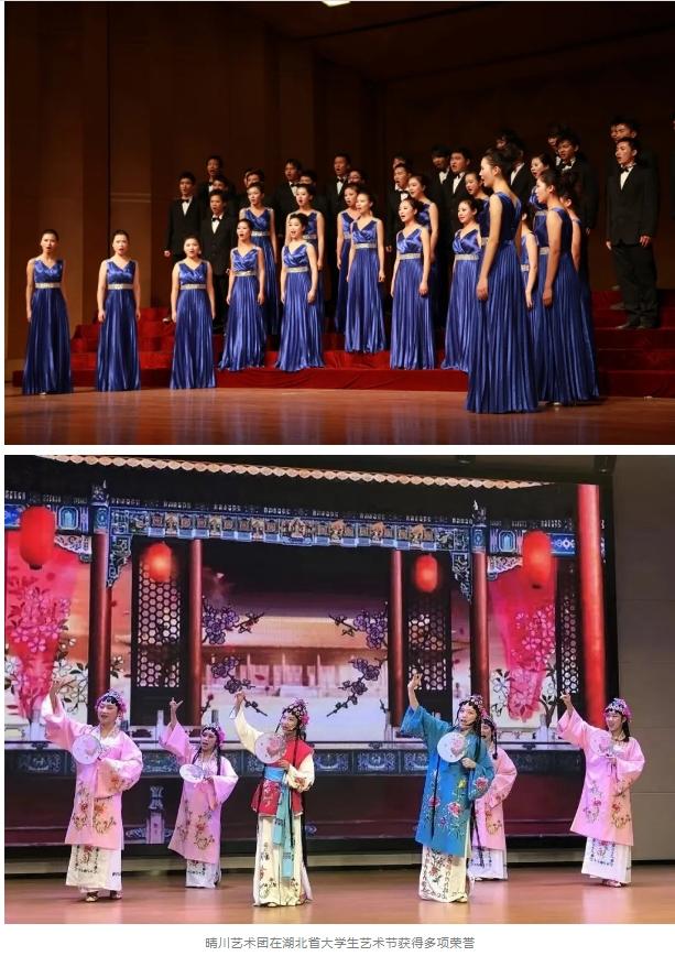 由中国当代著名书、画、印大师韩天衡,著名京剧表演艺术家刘长瑜、王志怡、薛亚平等20余位国家级艺术名家加盟的晴川艺术团,以及竹蜻蜓飞行协会、大学生京剧团、晴川赛艇队等50多个社团群星璀璨,为晴川学子个性化发展搭建闪亮舞台。