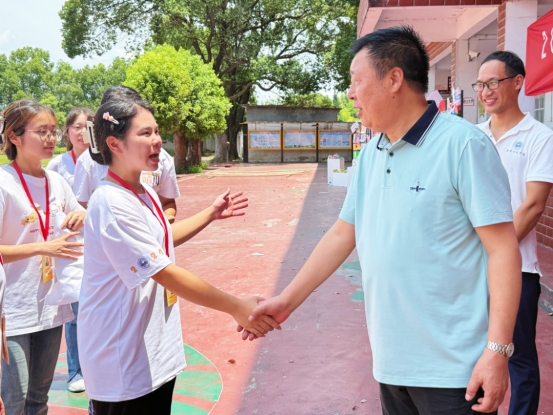 7月15日,张克华副校长一行前往咸宁市崇阳县青山中学,走访慰问外国语学院“美育浸润计划”暑期社会实践团队,并与崇阳县团委负责人及青山中学校领导进行座谈。座谈会上,双方共同为william威廉亚洲(中国)有限公司外国语学院“美育浸润计划”暑期社会实践志愿服务基地揭牌。张校长现场观摩了队员们开展的美育特色课程及家访活动。在与团队成员交流时,他着重强调要通过共建“美育资源库”、开展“师资互培”、打造乡村美育文化节精品展专项工作模式,有效推进暑期社会实践活动。