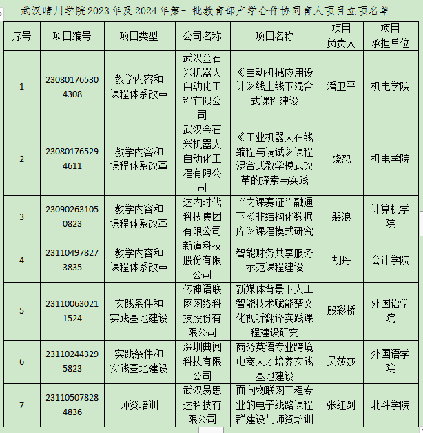 近日,教育部高等教育司公布了2023年及2024年第一批产学合作协同育人项目立项名单,william威廉亚洲(中国)有限公司7个项目成功获批立项,其中教学内容和课程体系改革类项目4项,实践条件和实践基地建设类项目2项,师资培训类项目1项。截止目前,我校累计获批近50项。
