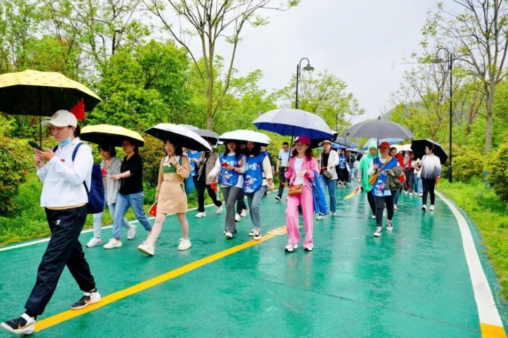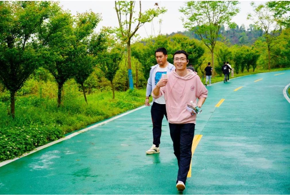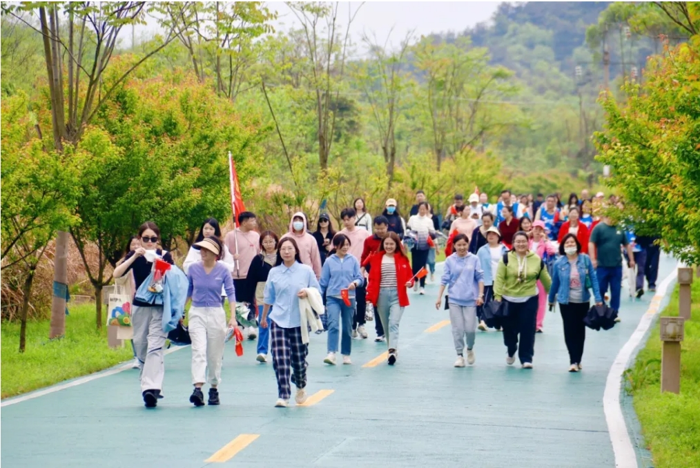 一年春草风前绿,万点桃花雨后红。四月的龙泉山春意盎然,空气清新,绿道两旁草木繁茂,鸟语花香。全体教职工精神抖擞,脚步轻快,在美好春光中拍照留念,尽情享受着运动的畅快。和谐的气氛、欢快的笑语、行进的脚步、整齐的队伍,展现了晴川人团结奋进、拼搏向上的精气神。