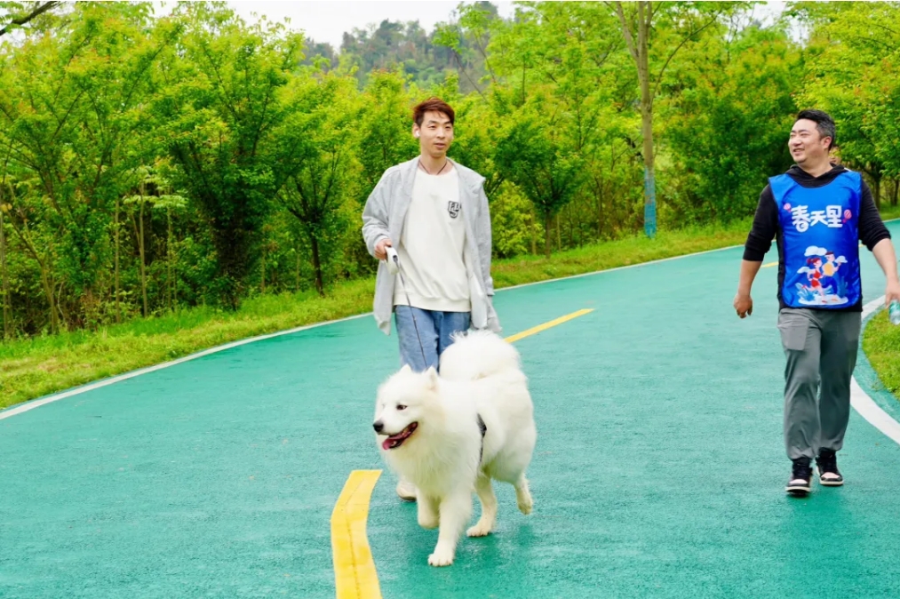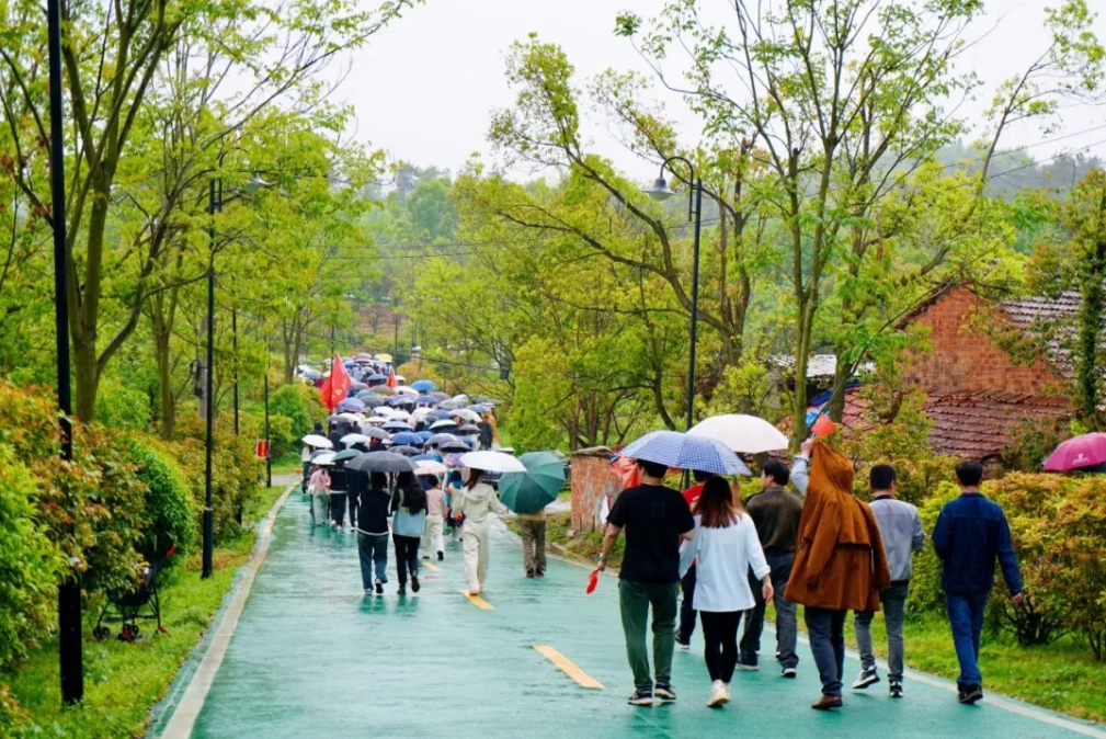 晴川人的队列穿行在青翠欲滴的绿道上