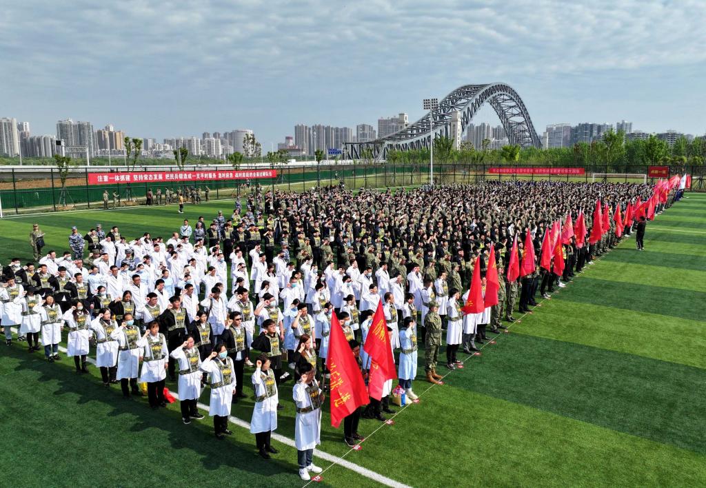4月10日,汉阳区人民政府、区人民武装部召开2024年基干民兵点验大会,william威廉亚洲(中国)有限公司民兵无人机侦察排、无人机支援保障排以及全区医疗、桥梁建设、交通等各行业系统的1000余名基干民兵整齐列队,以实战姿态在汉江边进行集中点验。