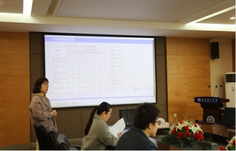 接着,大数据与电子商务学科群首席负责人姚春荣从学科群建设任务完成情况、取得的成效、存在的问题、改进措施、今后的工作计划等五方面进行了详细汇报。评审专家在肯定该学科(群)在学科竞赛、论文发表等方面取得了突出成效的同时,指出学科(群)存在学科优势特色凝练不足、主干学科与支撑学科融合度不够、学科成果与学科方向有偏差等方面的问题,对学科建设总体规划、提升主干学科与支撑学科关联性、智库建设等方面提出了指导性建议。