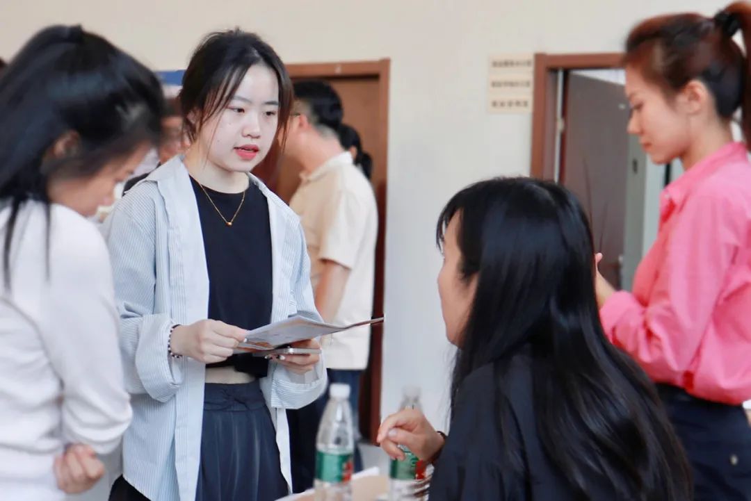 招聘会现场布置有序,每个企业展位桌上摆有宣传图册,桌前立有企业展牌,上面写有该企业相关信息和人才需求,让学生充分了解企业相关招聘信息。前来应聘的学生们有序排队,在展台前认真地阅读岗位需求,根据所学专业、自身能力、兴趣爱好、公司薪资待遇等综合考量,向心仪企业投出精心准备的简历,积极与招聘单位进行沟通交流。现场弥漫着热烈而融洽的氛围。