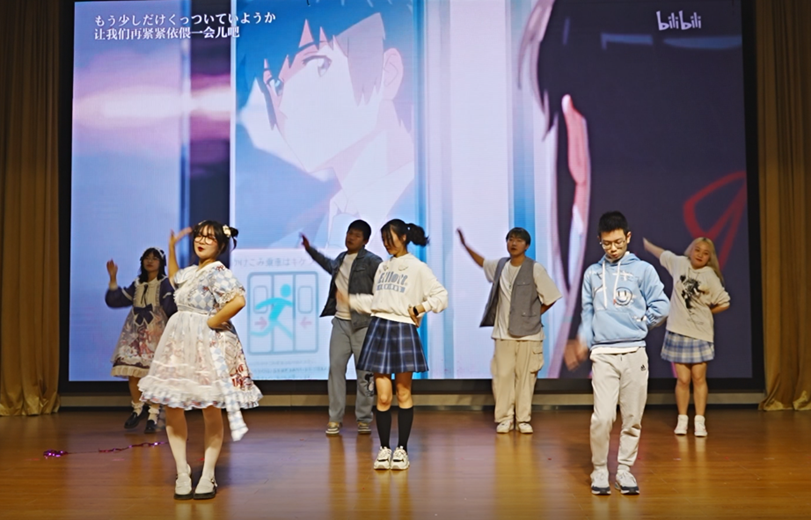 商学院学生带来的宅舞《触摸天空》给观众眼前一亮的感觉,可爱动人的舞蹈带给大家满满的青春活力。