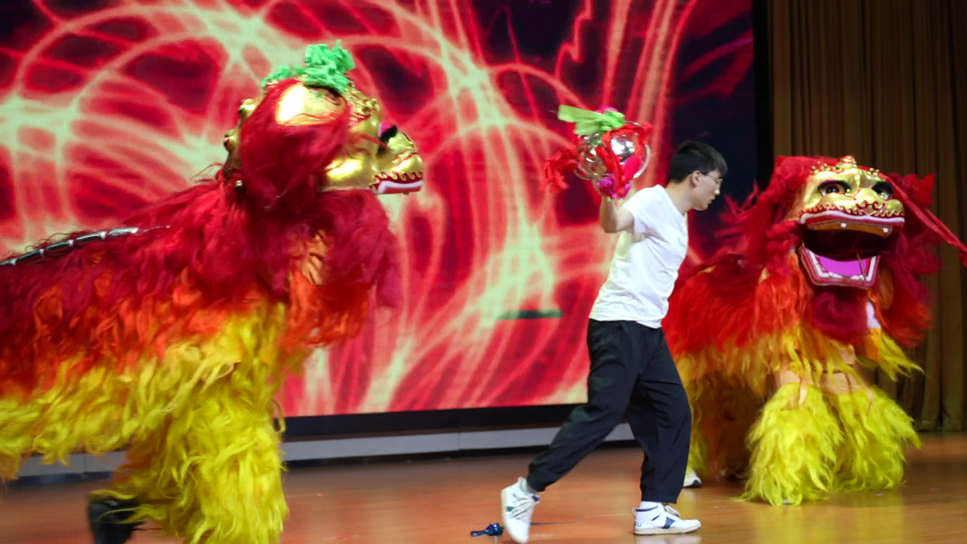 由计算机学院辅导员刘磊老师领衔的舞狮表演《舞狮中华》让观众们大饱眼福。