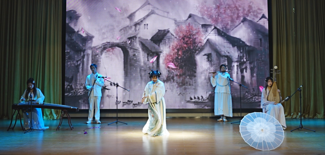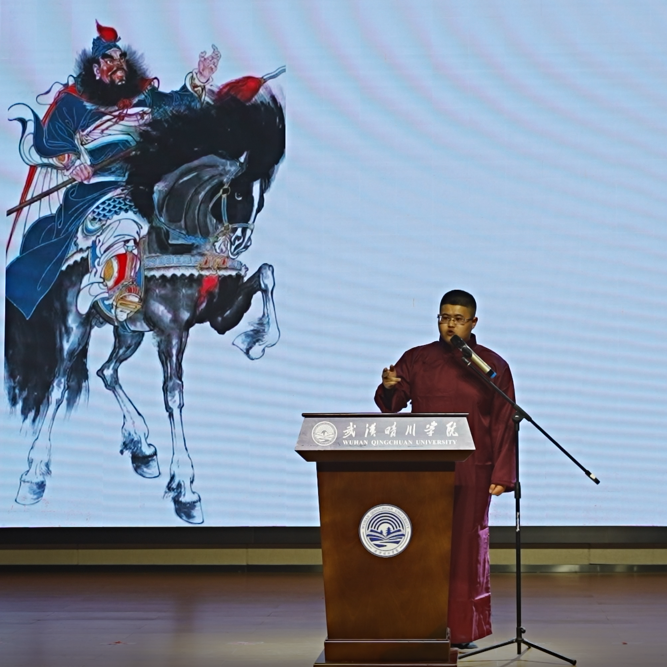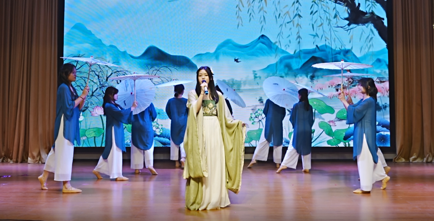 晴梦华衿汉服社带来的传统文化歌舞走秀节目《盛世华章》让大家梦回大唐。传媒艺术学院和外国语学院学生带来的歌舞《烟雨行舟》,将中国古色古香的南方文化演绎的惟妙惟肖。由晴川艺术团民乐团带来的乐器合奏《青花梦》将山水之美与人文之情进行了完美融合。晴川艺术团京剧团带来的京剧表演《卖水》展现出中国国粹的魅力。