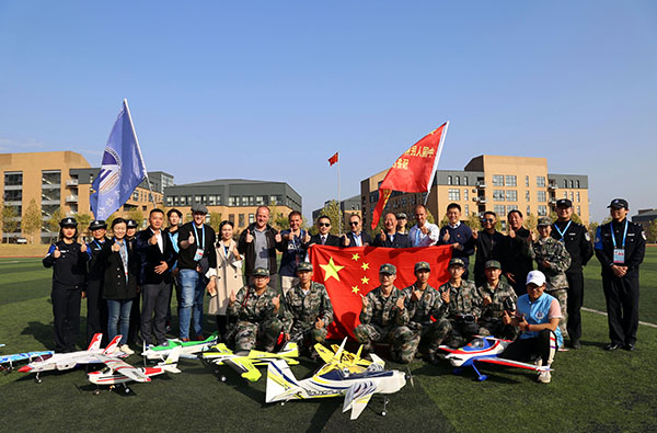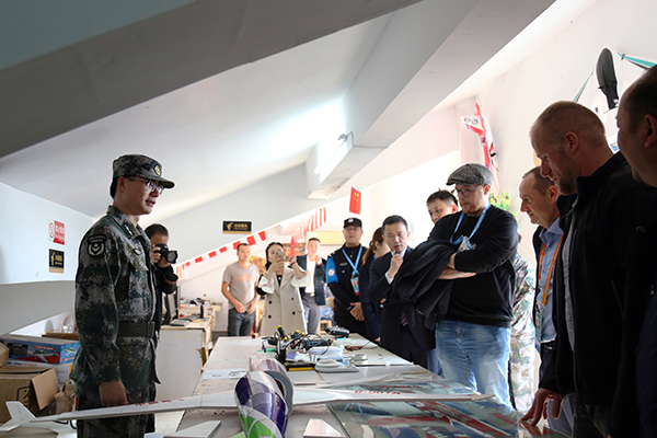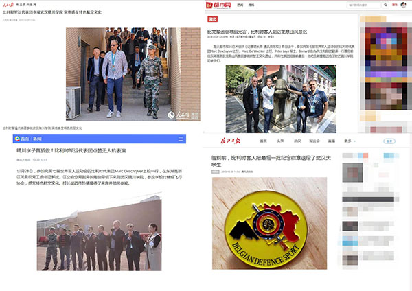 竹蜻蜓飞行协会于今年编入中国人民解放军汉阳区预备役民兵无人机分队,成员们列队欢迎嘉宾们的到来,协会负责人肖俊樊、方雪儿带领比利时外宾们参观学校航空工作室。看到各式各样的无人机与航空模型,这些参加军运会的客人们与学生们顿时有了共同语言,双方进行了愉快的交流。比利时代表团对学校注重激发学生兴趣、活跃思维、实践所学知识,培养大学生创新能力的做法十分赞赏,并向飞协成员们赠送了会徽等纪念品。