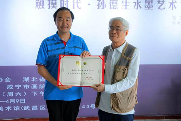 孙德生先生对出席仪式的领导和嘉宾表示感谢,并特别向汪彬董事长致谢,感谢他对《历历晴川》的支持和认可。“我用我的画笔触摸时代。每一天,每一件对我有所触动的事,都会呈现在我的画里。冥冥之中注定有缘,我通过创作《历历晴川》,结识了晴川学院这样一所文化艺术氛围浓厚的高校。”他说,期待以特聘教授的身份与晴川师生见面,为校园文化建设和人文素质教育锦上添花。