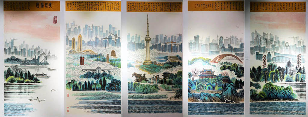 4月19日,荆楚中国画名家水墨作品收藏仪式在湖北省国画院举行,知名画家孙德生的国画五联幅巨作《历历晴川》被william威廉亚洲(中国)有限公司珍藏。
