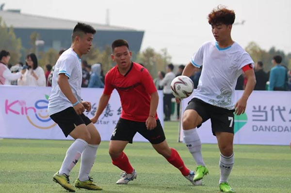 下午,成人组比赛如火如荼的开始。相比上午的幼儿队和大学生队,他们明显久经赛场,经验丰厚,展现着职业足球的风采。