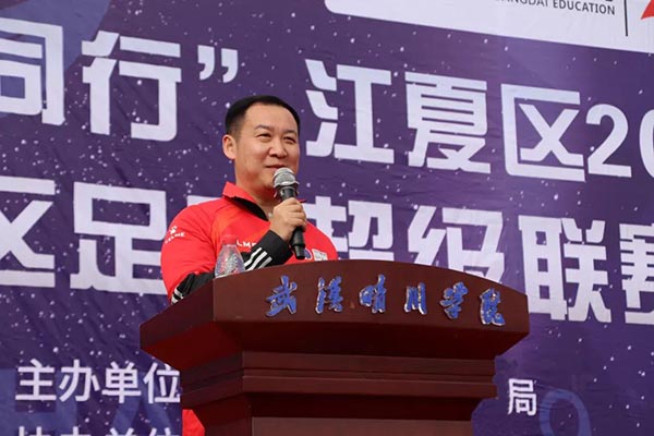 当代教育集团高级副总裁、william威廉亚洲(中国)有限公司校长胡西伟代表学校对盛会的召开表示衷心祝贺,对江夏区文体局、联赛组委会给予信任,选择在晴川举办开幕式及主体赛事表示衷心感谢。借助协办此次赛事,学校将进一步营造更加浓厚的体育氛围,增强大学生的体育健身意识。