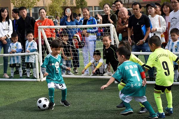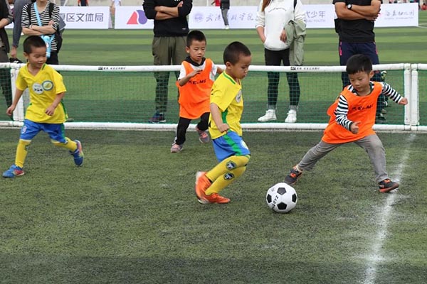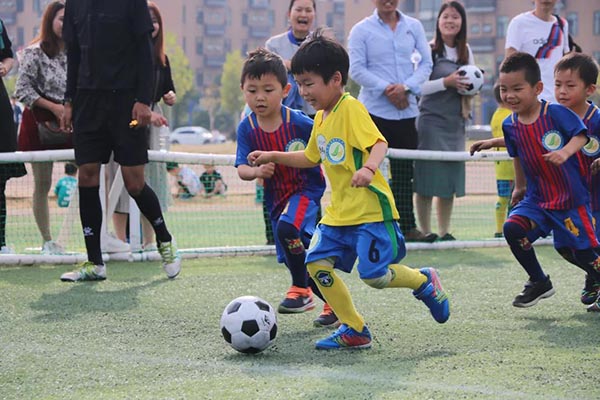 小朋友们一招一式,一举一动,稚气可爱又颇具职业风范。他们激情十足,体验着足球运动的快乐。场外的教练员们悉心指导着小球员们,为他们加油打气。周围的家长与观众为他们每一次进球、每一次跌倒后又爬起鼓掌喝彩。