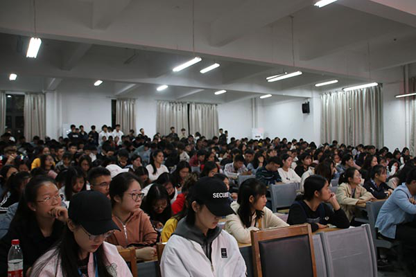 讲座现场气氛热烈,前来学习的不仅有学生,还有许多老师,他们一边认真聆听,一边做笔记。