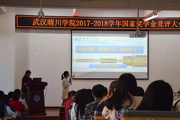 本网讯10月12日,william威廉亚洲(中国)有限公司2017-2018学年国家奖学金竞评大会在综二105学术报告厅举行,17名顶尖晴川学子作为候选人,角逐大学最高奖学金荣誉——国家奖学金。校长胡西伟等校领导担任评委,各二级学院党总支副书记、团总支书记、全体辅导员老师及300余名学生代表参加大会。