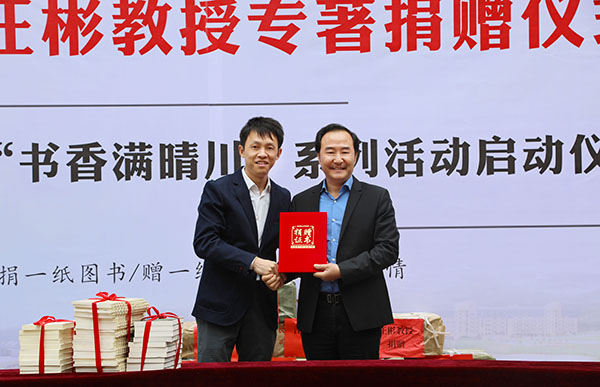 校长胡西伟代表学校接受专著捐赠
