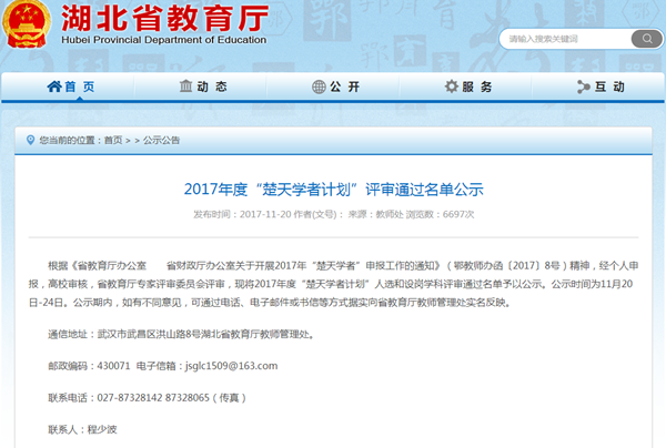 “楚天学者计划”是湖北省为吸引、遴选和造就一批具有国际、国内领先水平的学科、专业带头人,推进一流大学和一流学科建设,提升高校服务经济社会发展水平而设立的人才计划。近年来,学校大力实施人才高地汇聚工程,积极组织开展“楚天学者计划”申报工作,通过引进高层次人才,为提升学校科研水平、提高人才培养质量提供人才支持和保障。